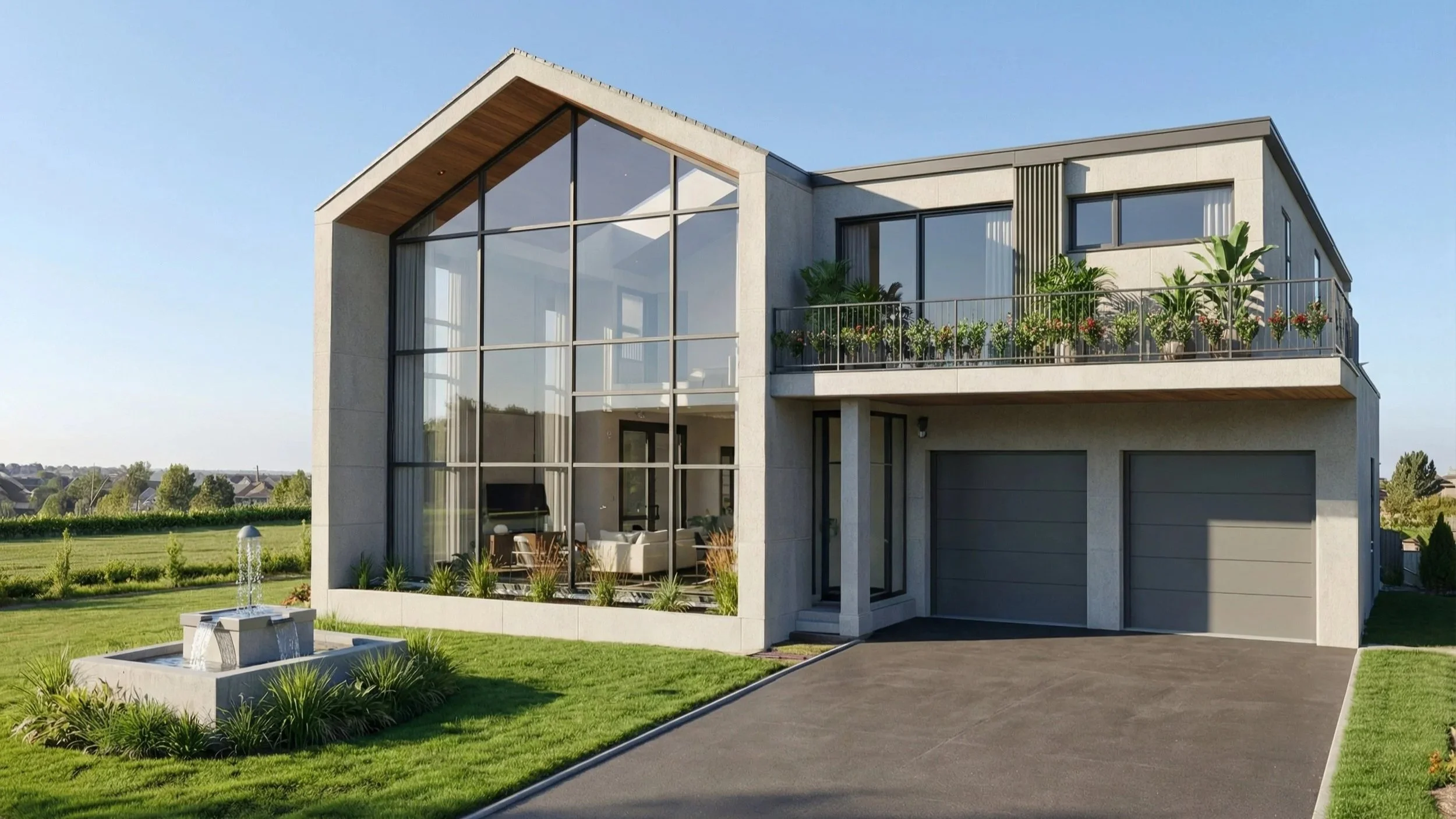 Unique Modern Façade: A masterclass in iconic residential design, featuring a mix of sleek glazing, metal accents, and sustainable materials.